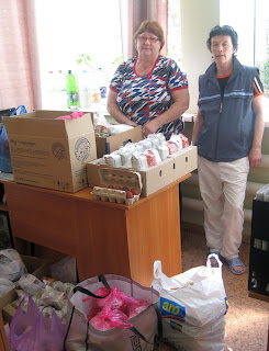 50 человек получили праздничные продуктовые наборы: пасхальный кулич и крашеные яйца, банку тушенки, пачку чая и сладкий рулет. Для общего праздничного ужина сестры привезли рис, гречку, масло, тушенку и чай.