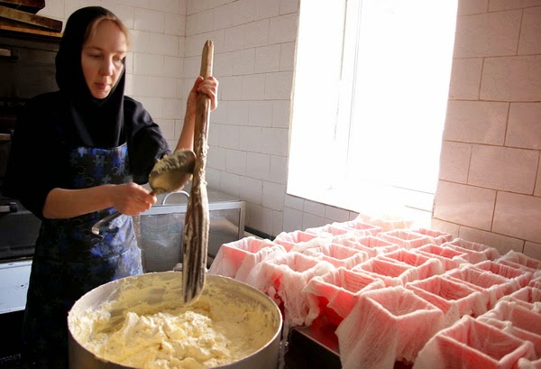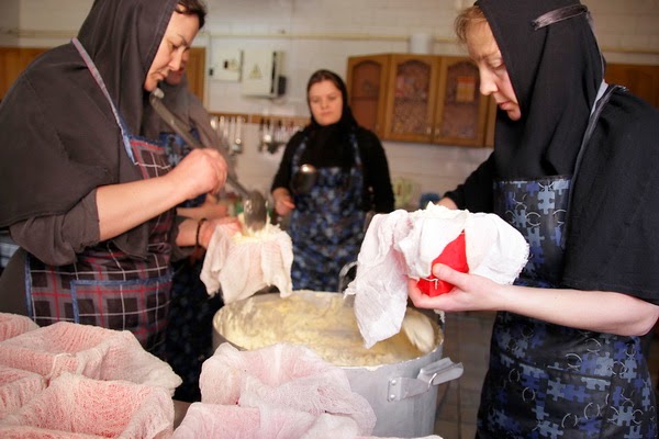 В последние дни Страстной седмицы принято готовить творожные пасхи, сегодня утром сестры нашей обители тоже начали изготовление этого одного из самых любимых пасхальных лакомств.