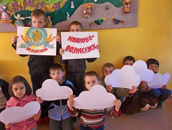 28 мая накануне праздника Вознесения Господня сестры Введенского монастыря посетили Социально-реабилитационный центр для несовершеннолетних и рассказали детям о предстоящем двунадесятом празднике. Вознесение Господне – праздник нашего города, поскольку до 1932 года он имел название Иваново-Вознесенск. Ребята вырезали из бумаги белые облака и нарисовали храмы на фоне голубого неба.