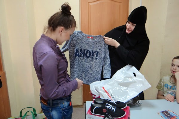 Сложно передать словами радость, с которой дети принимают эти подарки. «Знаете, матушка Фотиния, за последние 4 года, что мы общаемся, день Пасхи стал для меня настоящим праздником», — поделился воспитанник Слава. Он уже несколько лет занимается настольным теннисом, но хорошая ракетка – слишком дорогое удовольствие. Сегодня его мечта сбылась: благодаря собранным пожертвованиям, сестры купили воспитанникам действительно то, что каждый из ребят желал, или в чем нуждался: кроссовки и мокасины, брюки и джинсы, рубашки и футболки, игрушки и аксессуары – каждый получил подарок, который выбрал сам.
