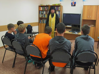Центр временной изоляции несовершеннолетних правонарушителей — особое учреждение, здесь содержатся дети и подростки, совершившие общественно опасные деяния, но в силу возраста, не подлежащие уголовной или административной ответственности. Постояльцев ЦВИНП постоянно навещает клирик Введенской обители иеромонах Даниил (Маханов). На этот раз встреча была посвящена Дню славянской письменности.