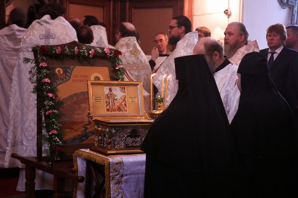 Несмотря на непогоду, храм был полон прихожан, все смогли приложиться к раке блаженного и ковчегу с частицей его мощей.