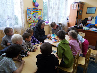 Вместе и трудницей дети посмотрели иллюстрированную книгу о житии преподобного, объясняя каждую из увиденных картинок: «Здесь преподобный учится, здесь — кормит медведя..» Ирина посоветовала детям молиться преподобному Сергию о помощи в учебе.