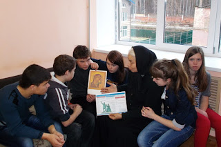 Накануне дня памяти Казанской иконы Божией Матери трудница Введенской обители художница Ирина Власова встретилась с детьми старшей группы Социально-реабилитационного центра для несовершеннолетних. Этот возраст, 12 – 15 лет, считается трудным, но Ирину подростки встретили радушно. Это третья встреча трудницы со старшей группой, под её руководством ребята готовили рисунки к выставке-конкурсу «Креститель Руси князь Владимир и первые русские святые».
