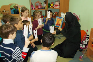 Вместе с трудницей дети выучили короткие молитвы Господу, Ангелу Хранителю и Божией Матери, а затем вырезали из бумаги ангелов. Все дети получили сладкие подарки.
