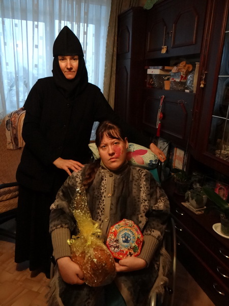Социальный отдел Введенского монастыря поздравил с праздником Рождества Христова детей-инвалидов — членов общества «Росток» и передал 30 подарков. Несовершеннолетняя Наташа получила материальную помощь и сладкого рождественского барашка, испеченного сестрами. Родители Наташи умерли, ее воспитывает бабушка. Наташа постоянно болеет, совсем не чувствует нижнюю часть тела, но несмотря на это, не унывает, с удовольствием занимается рукоделием – бисероплетением, а потом дарит свои работы близким.