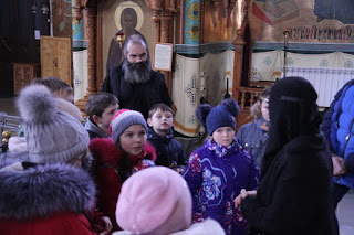 Эти выходные дети провели во Введенской обители. Помолившись за Божественной Литургией, дети вместе с о. Николаем и преподавателем воскресной школы трудницей Фотинией приехали во Введенский монастырь. Здесь гости узнали об истории храма, услышали житие священномученика Владимира Лежневского и блаженного Алексея Елнатского, приложились к святыням. В музее Новомучеников и исповедников нашего края дети рассмотрели фотографии взорванных в начале ХХ века в городе Иванове храмов, фотографии святых, их рукописи и личные вещи.