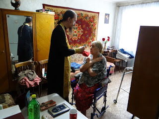 Инвалидам сестры привезли святую воду и просфоры.