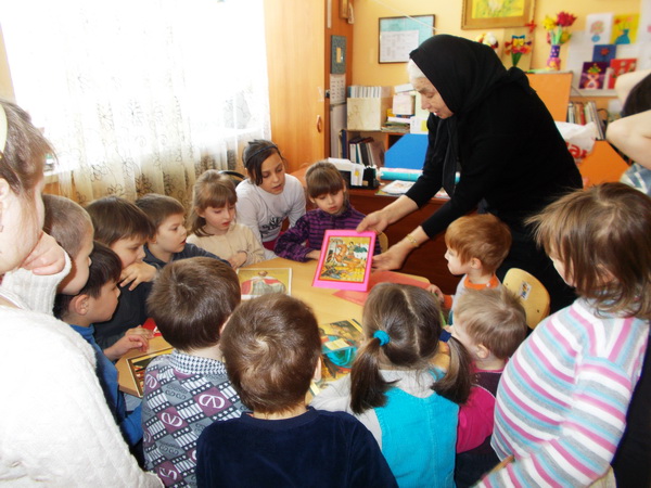 Первая, самая строгая неделя Великого поста заканчивается праздником «Торжество православия». Накануне этого праздника трудница Введенской обители Ирина встретилась с детьми младшей и средней групп Социально-реабилитационного центра для несовершеннолетних. На занятии Ирина побеседовала с детьми об иконопочитании и рассказала о наступающем празднике.