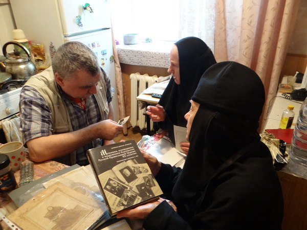 В преддверии дня памяти святых сестры Введенской обители, несущие послушание в комиссии по канонизации святых и сестры социального отдела встретились с инвалидами общества «Надежда». Сергей Полянских, Галина Сенина, Ирина Шутова, Александр Кувшинов, Нина Дворникова, Елена Собинова, Людмила Казакова и Людмила Долгих тепло встретили сестер у себя дома. Мон. Ювеналия и мон. Афанасия рассказали инвалидам о святых равноапостольных Кирилле и Мефодии, об их вкладе в развитие нашего языка. Сестры также познакомили инвалидов с жизнеописаниями святых нашего края: священномученика Владимира Лежневского и блаженного Алексея Елнатского, показали фотографии святых, иконы, а также сохранившиеся рукописи и семейные фото сщмч. Владимира. С Сергием Полянским, который особо интересуется историей нашего края, у сестер завязалась оживленная беседа.