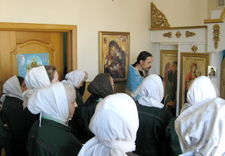 Сегодня сестры обители утешили осужденных женщин исполнением духовных кантов. Послушницы Ирина и Лариса обычно поют за Божественной литургией в женской колонии, но иногда исполняют и духовные песнопения.