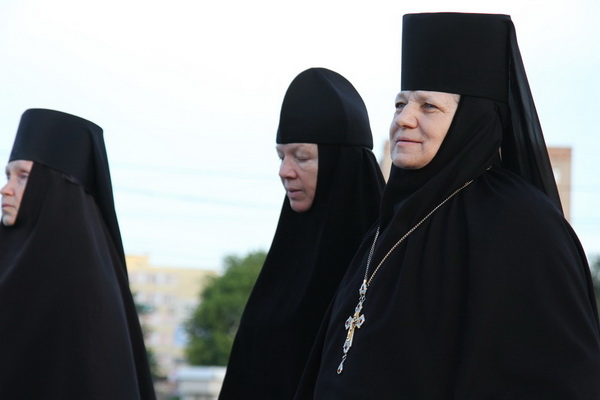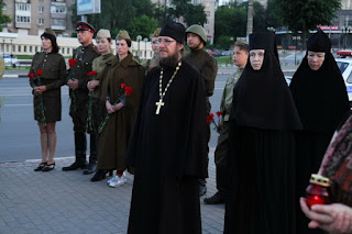 После завершения шествия у мемориала была объявлена минута молчания и состоялся митинг в память о подвигах воинов Великой Отечественной войны 1941-1945 гг. Участники возложили цветы и свечи к Вечному огню в память о тех, кто погиб, защищая Родину. В траурном митинге приняли участие сестры Введенского монастыря, Игумения Мария (Перепеча) и клирик обители иеромонах Даниил (Маханов).