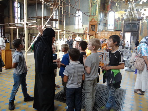На праздник Преображения Господня нашу обитель посетили дети и руководство Социально-реабилитационного центра для несовершеннолетних. В монастыре юных гостей встретила инокиня Фотиния, которая уже более пяти лет занимается с детьми Центра. Впервые дети увидели, как освящают плоды: виноград и яблоки. Всем посетителям ин. Фотиния раздала свечи, которые дети с благоговением поставили у икон.
