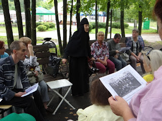 Сестры также рассказали о Бутовском полигоне НКВД, который стал в 1930-1950 годы местом захоронения десятков тысяч замученных и расстрелянных людей. Инвалиды узнали житие особо почитаемого мученика Бутовского полигона – сщмч. Серафима (Чичагова).