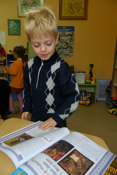 На занятие Ирина принесла несколько иллюстрированных книг с описанием житий святых. Дети с интересом перелистывали красочные страницы, искали своих небесных покровителей и вслух читали их житие.