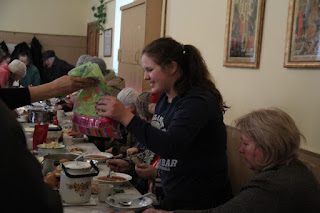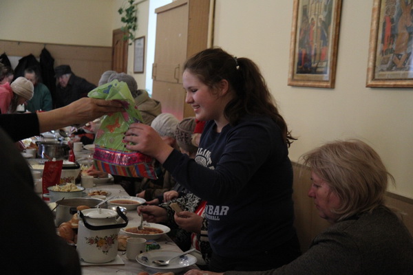 29 октября – в последнюю субботу этого месяца сестры устроили традиционный благотворительный обед для малоимущих – 70 человек, направленных Отделом социальных гарантий и социального обслуживания. За трапезой гости отведали: борщ, макароны с яйцом, овощной салат, кильку в томатном соусе, сыр, яйца и творог с подворья, свежую выпечку и другие сладости.