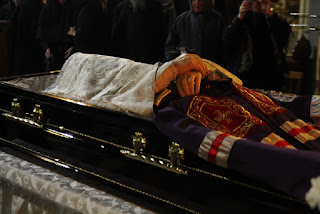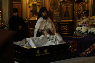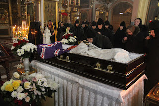 С 8 ноября день и ночь не прекращается молитва у тела почившего архиепископа Амвросия. Священнослужители и сестры Введенской обители неоднократно приезжали в Преображенский храм и молились о упокоении Владыки. Сегодня в 11.00 будет совершено отпевание архиепископа Амвросия и погребение у Петропавловского храма на кладбище Балино.