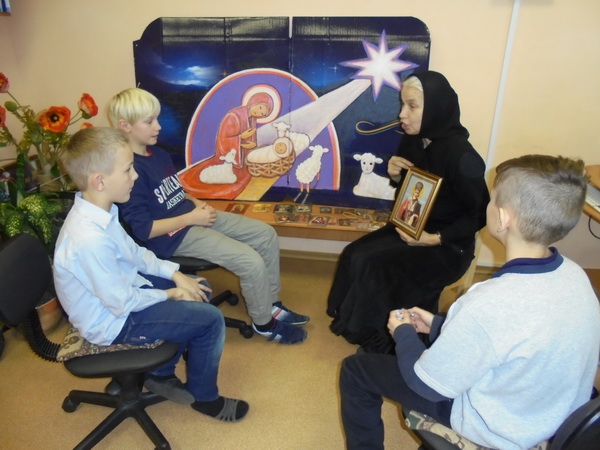 Накануне дня памяти святителя Николая, епископа Мирликийских трудница Введенской обители Ирина встретилась с детьми Социально-реабилитационного центра для несовершеннолетних и рассказала о жизни святого и чудесах, происходивших по молитвам к нему.