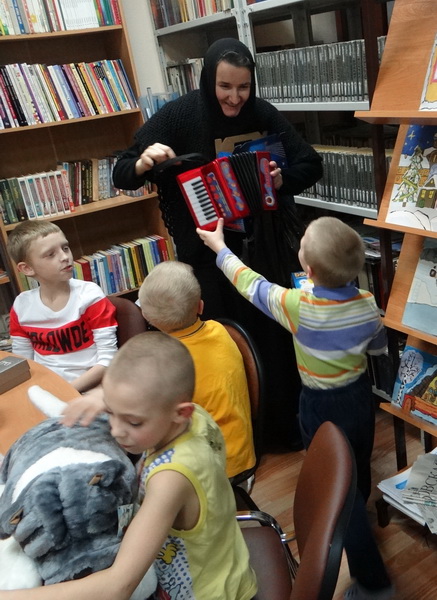 В продолжении поздравления подопечных социального отдела обители ин. Фотиния подарила детям мягкие игрушки, вещи и заколки ручной работы от инвалида общества «Надежда» Ольги.
