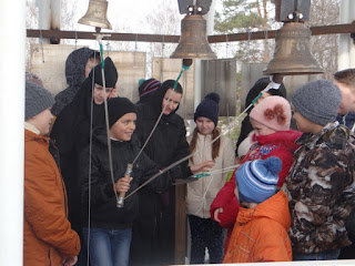Во дни святой Четыредесятницы колокольный звон положен редко – лишь по воскресным дням и большим праздником. По случаю праздничного дня звонарь инокиня Ксения пригласила ребят подняться на звонницу. Пока сестра рассказывала историю подворья, гости с высоты птичьего полета смогли осмотреть его окрестности, а затем сами позвонить «во вся красная».