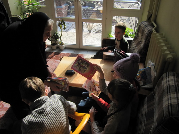 Послушница Елисавета рассказала детям о первопечатнике дьяконе Иване Федорове, когда и как зародилось на Руси книгопечатание. Дети познакомились с книгой «Свет миру. Книга о монашестве и монастырях на Руси» и узнали, что уже более тысячи лет свет православной христианской веры освящает наше Отечество. Его центром всегда были монашеские обители. Молитвами монахов, доблестью воинов и трудами благочестивых мирян строилась наша страна — Святая Русь.