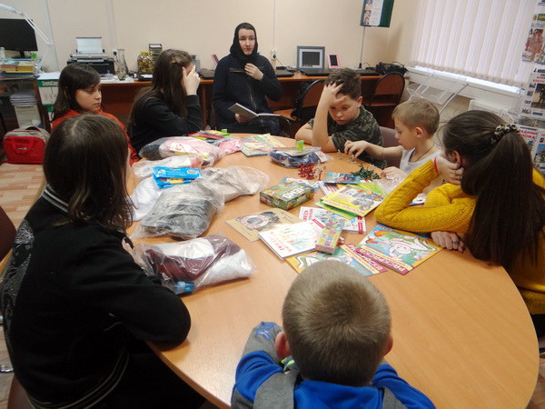 Сестра побеседовала с детьми о празднике Благовещения, рассказала о чудесном явлении Архангела Пресвятой Деве. Дети поинтересовались, в чем состоит служение Ангелов, для чего Господь посылает их людям. На этот вопрос инокиня Фотиния привела в пример интересный эпизод из жития святителя Григория Двоеслова. Однажды, когда святитель Григорий по обычаю переписывал книги, к нему пришел один нищий (то был во образе нищего Ангел Господень) и сказал ему: «Пожалей меня, раб Бога Вышнего! Будучи корабельщиком, я погубил в море не только, что сам имел, но и чужое». Нищелюбец и истинный раб Христов святой Григорий, призвал служащего ему брата и повелел дать этому человеку шесть золотых монет. Нищий взял и ушел. Это повторялось несколько раз. Святой Григорий каждый раз помогал этому нищему. За свою доброту и нищелюбие Господь Приставил Ангела, чтобы помогать святителю и оберегать его.
