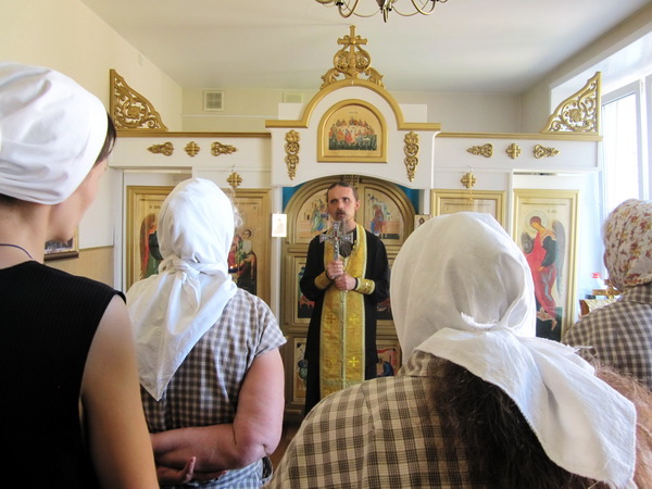 22 августа в домовом храме в честь иконы Божией Матери «Скоропослушница» женской колонии №7 была совершена Божественная литургия. В колонию приехали священнослужители — протоиерей Александр Гуляев и иеромонах Тихон (Просыпкин) с послушницами Введенской обители – Ириной и Ларисой Садыковыми.