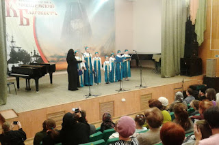 Девочки исполнили духовные песнопения: «Многолетие» и тропарь «Новомученикам и исповедникам Российским».