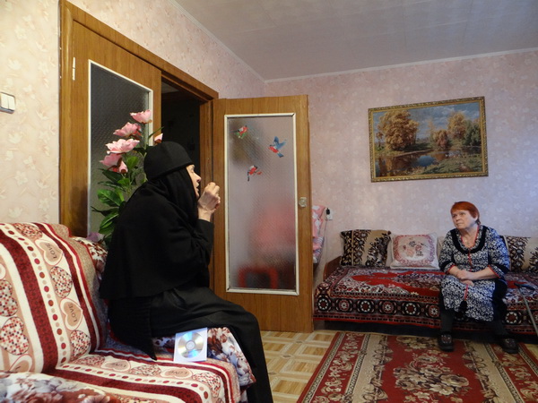 Сестры часто навещают инвалидов в их домах, беседуют, привозят духовную литературу, иконы, святую воду, просфоры и другие нужные им вещи. Как и всегда, эти встречи прошли в теплой, по-семейному доброй обстановке.
