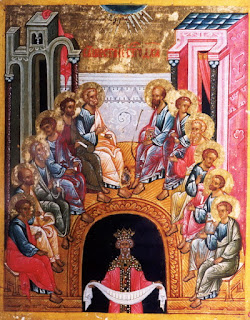 Отмечая день сей как праздник Духа Святаго, благоизволившего по бесконечной любви к Богу Сыну с бесконечною радостью и послушанием сойти на землю и взять в Свои всесильные руки дело человеческого спасения, помянем в благодарственных песнопениях и Пресвятую Деву Марию, на Кою Дух Святый сошел ранее, нежели на апостолов. На апостолов Бог Дух сошел как на Церковь, как на единодушную общину святых; на Богоматерь же – как на особо избранную Личность. Дух Святый найдет на Тебя, и сила Всевышнего осенит Тебя, – благовестил архангел Гавриил Пресвятой Деве. И Она силою Духа Святаго родила Плод краснейший, от Коего благоухают небо и земля и Коим питаются все верные от начала до конца. О Пресвятая Пречистая Богородица, заря и колыбель нашего спасения, наш образ смирения и послушания, Заступница и Молитвенница наша у престола Божия, молись непрестанно со святыми апостолами о нас!