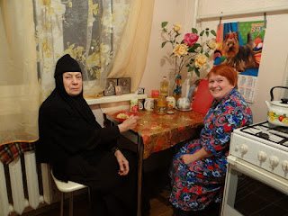 Людмила Долгих радушно встретила сестер в своей квартире, даже приготовила обед для гостей — нажарила картошки. Сестры были тронуты столь теплым приемом. С Людмилой поговорили о чудесах по молитвам святителя Николая Мирликийского. Каждый рассказывал о чудесах, которые происходили в их жизни или близких людей. Людмилу сестры поздравили с прошедшим Днём Ангела.