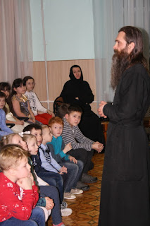 По традиции, эту встречу открыл иеромонах Алексий (Лоза). Просто и доступно священнослужитель рассказал собравшимся — и детям, и взрослым о духовном смысле наступившего праздника Рождества Христова и приближающегося Богоявления. Обратившись к родителям, он напомнил, что в воспитании детей обязательно следует оставлять место Богу, воспитывать в православной вере. Руководство Центра пригласило в гости и членов общества «Православные добровольцы», которые исполнили несколько песнопений для всех собравшихся в зале гостей.