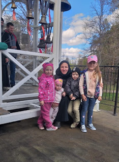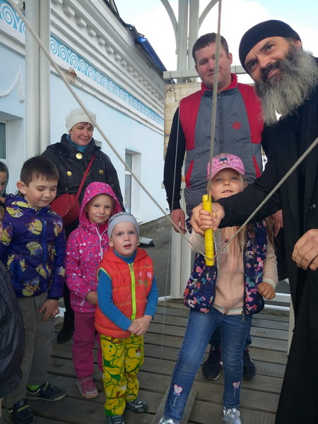Настоятельница подворья монахиня Мелитина рассказала детям о подворье и проводила на звонницу, где по пасхальной традиции, все дети вместе с иеромонахом Николаем (Горбачевым) смогли позвонить в колокола.
