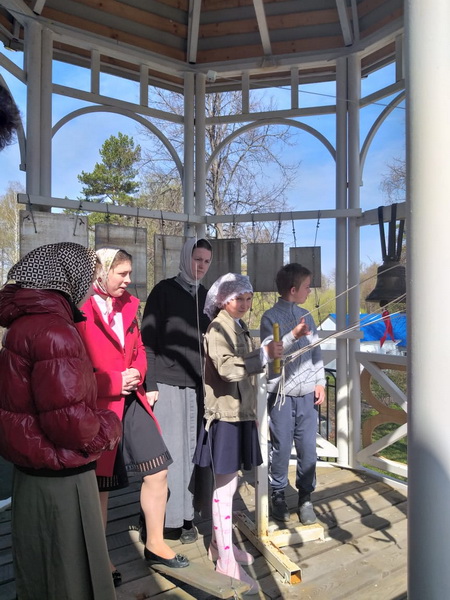 После завершения Литургии ребята пообедали в монастырской трапезной, а затем инокиня Ксения провела детям мастер-класс по колокольному звону.