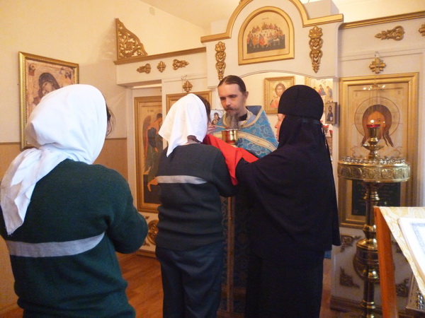 5 ноября, накануне праздника Пресвятой Богородицы Всех скорбящих Радосте в женскую исправительную колонию №7 приехали клирики и сестры Введенского женского монастыря. Иеромонах Тихон (Просыпкин) совершил Божественную литургию в домовом храме колонии, куда собрались все верующие. Женщины исповедовались и причастились Святых Христовых Таин. В завершении богослужения иеромонах Тихон сказал несколько слов о промысле Божием в жизни каждого человека, о терпении скорбей и помощи Божией Матери каждому, кто призывает Её в молитвах. Многие на протяжении жизни проходят через лишения и трудности, скорби и печали, болезни и немощи. Уже в одном имени иконы «Всех скорбящих Радосте» христиане находят утешение. Мы обращаемся к Богородице, которая спешит на зов о помощи, поддерживает нас в испытаниях, утирает слезы плачущих и дарит надежду.