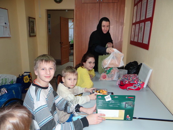 В канун Нового года инокиня Фотиния навестила подопечных детского дома «Ровесник», чтобы поздравить детей с наступающим праздником. Все ребята получили подарки: игрушки и разные трикотажные изделия, мыло ручной работы, сладости из Крыма и монастырскую выпечку — рождественских овечек.
